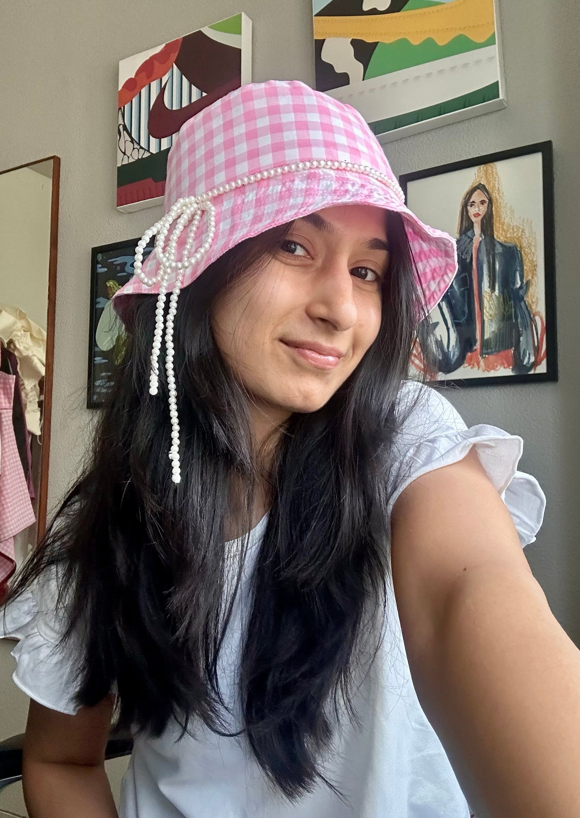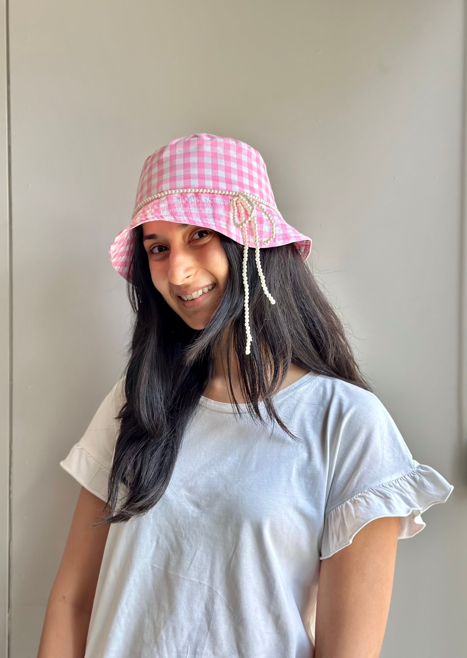 Pink checkered bucket hat