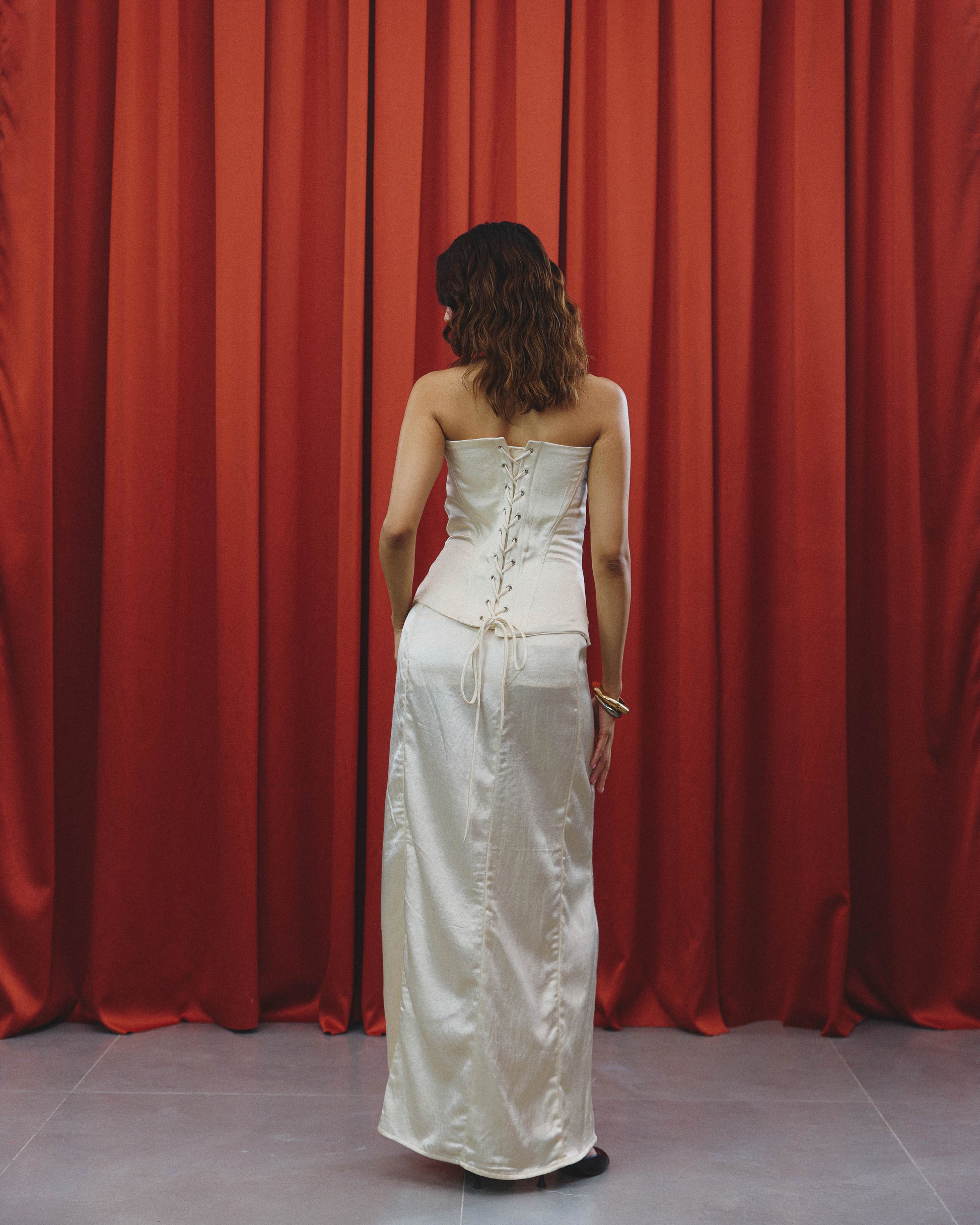 Tara ivory lace skirt set